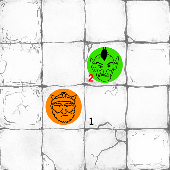Moving a character from one open space to an adjacent open space costs 1 MOVE. A diagonal movement costs 2 MOVE.