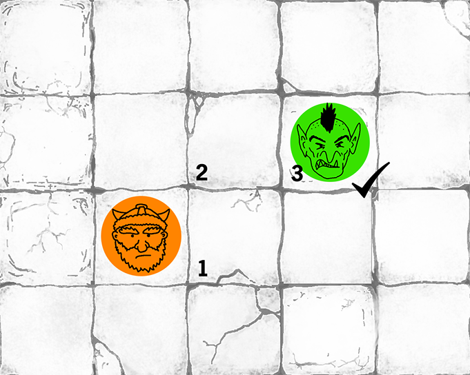 For example, if Turgar the Orc's MOVE is 5, then on every turn he may walk up to 5 spaces, using his 3 Action Points however he pleases. If he chooses to RUN, he may move up to 10 spaces on his turn, however he may only spend 1 Action Point.
